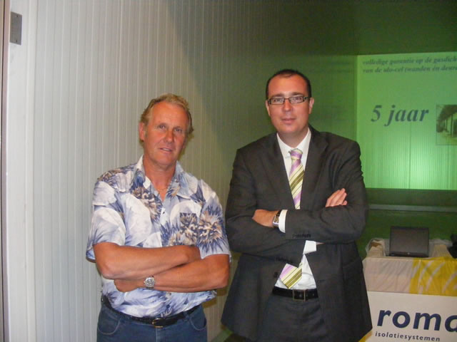 Fruitkweker Kole uit Wemeldinge en Aldert van Dijk van Roma isolatiesystemen.