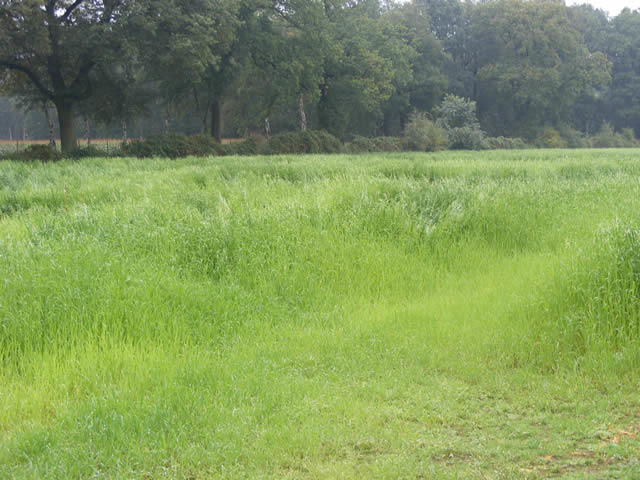 Nieuw in te planten perceel met groenbemester voor bodemverbetering en aaltjesbestrijding.