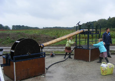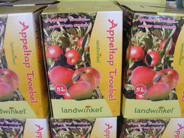 De appeltap met een inhoud van 5 liter, waarin het sap 60 dagen houdbaar is na openen.