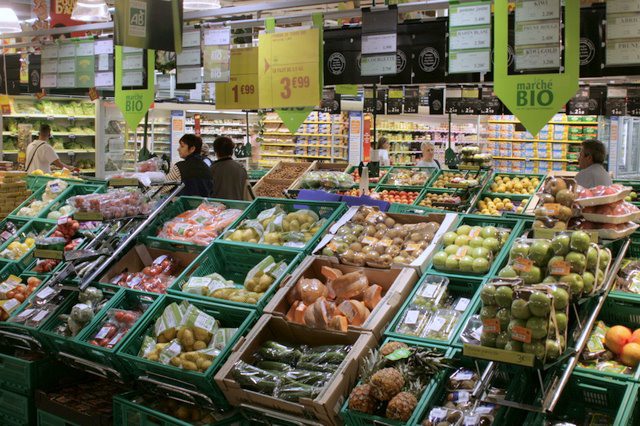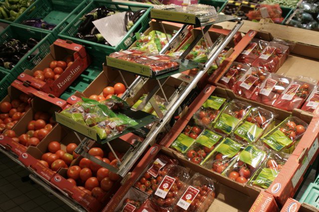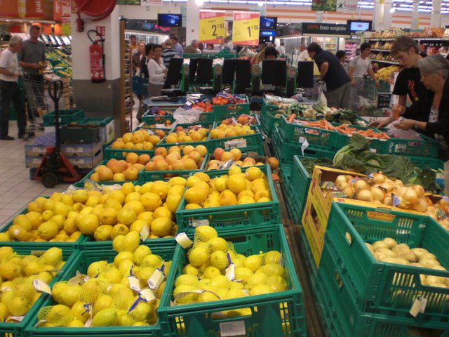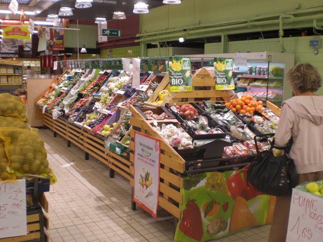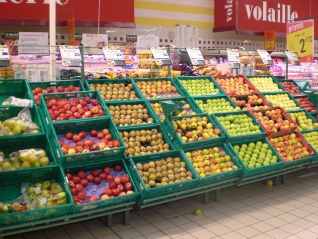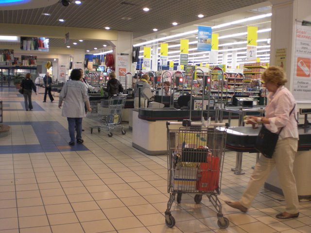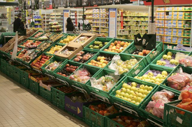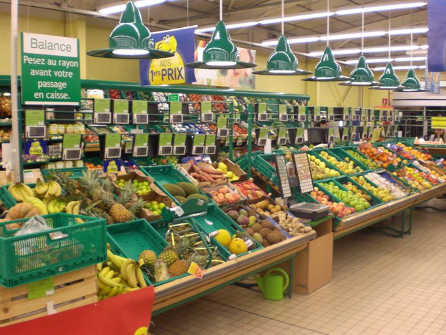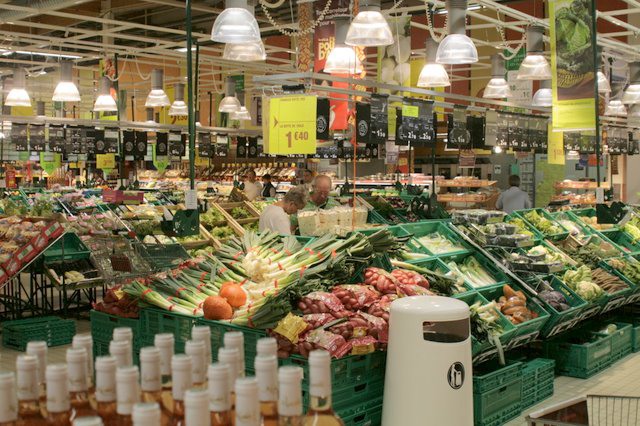 hier kunnen klanten in de kraam rondlopen en hun boodschappen mandjes vullen en aan het einde afrekenen