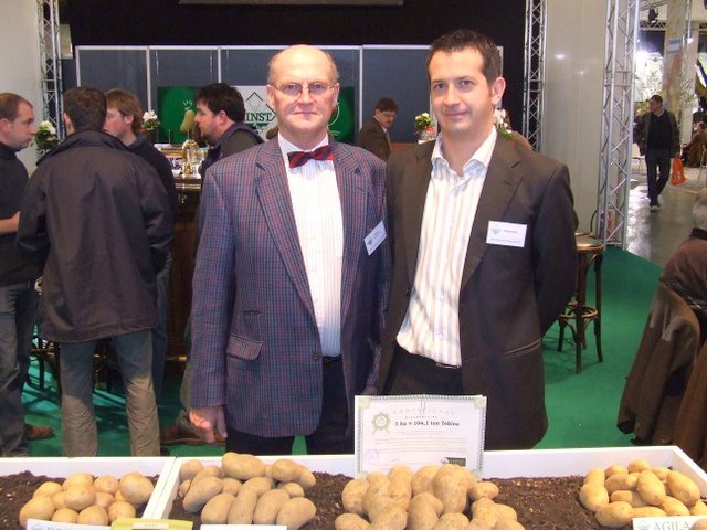 De Belgische ardappelveredelaar Binst introduceerde de Tebina, een aardappel met een jaarlijkse opbrengst tot 100 hectare. De aardappel heeft een Nederlands tintje want het ras is afkomstig van Jacques Timmermans (links), hier op de foto met Francis Binst
