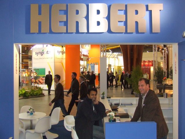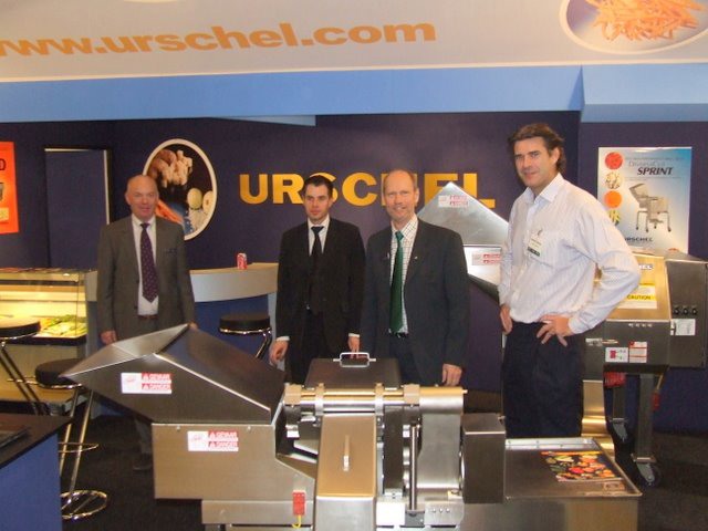De stand van Urschel met Henk van den Bovenkamp, Jan van der Horst en Luc van Buynder.