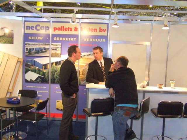 Harry Kessels, Marco Penders en Jan Jegerings in de stand van Groba