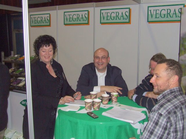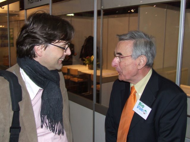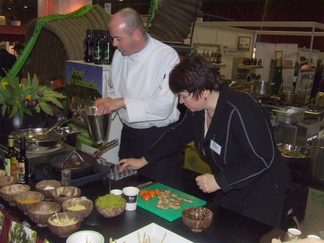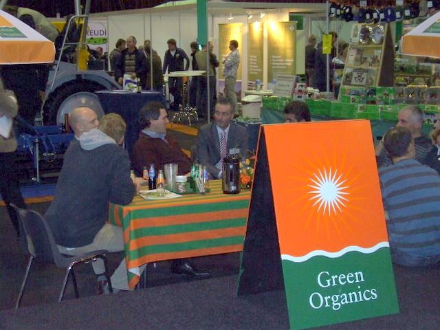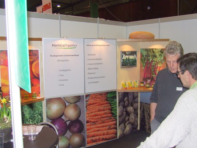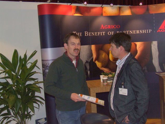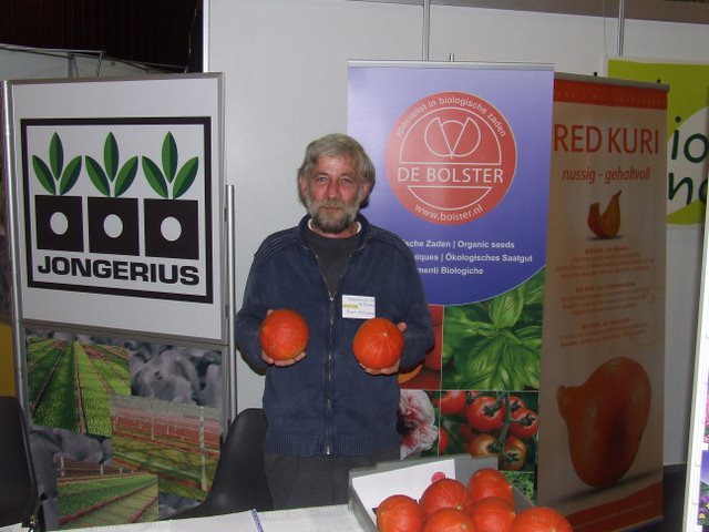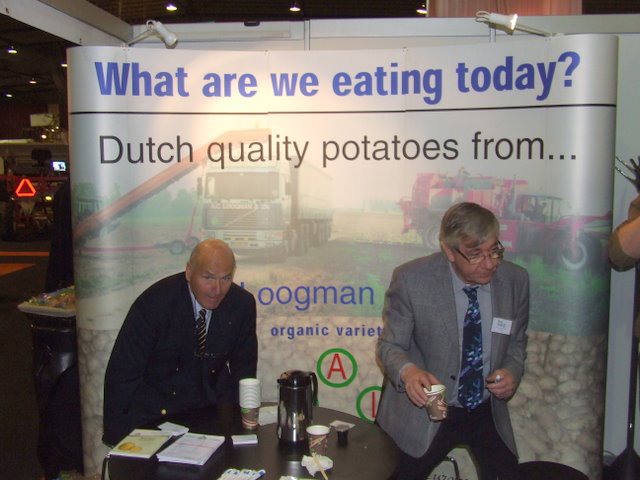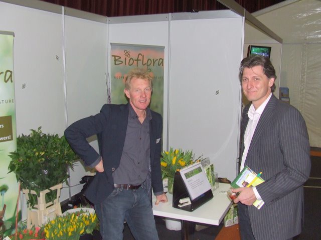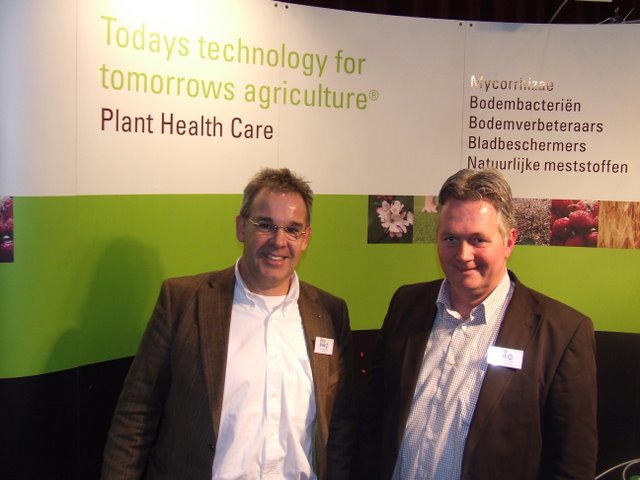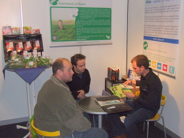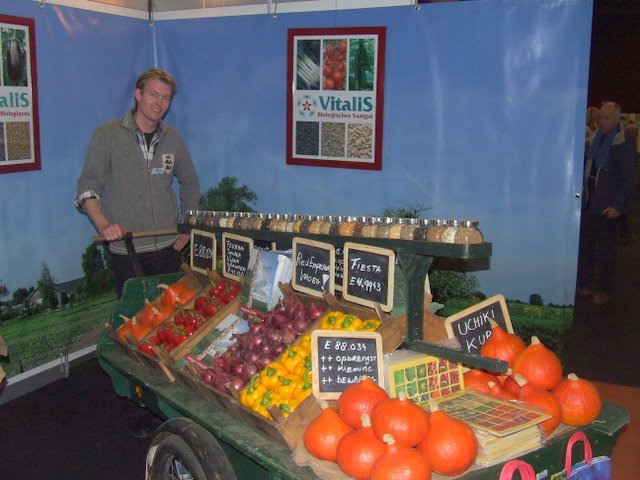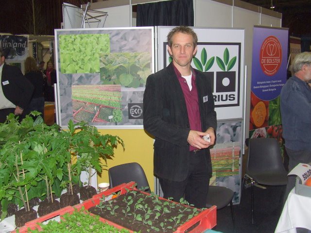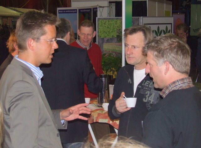 Biologisch gesprek in de stand van Bejo Zaden. Rechts: Perry Kuijlboer
