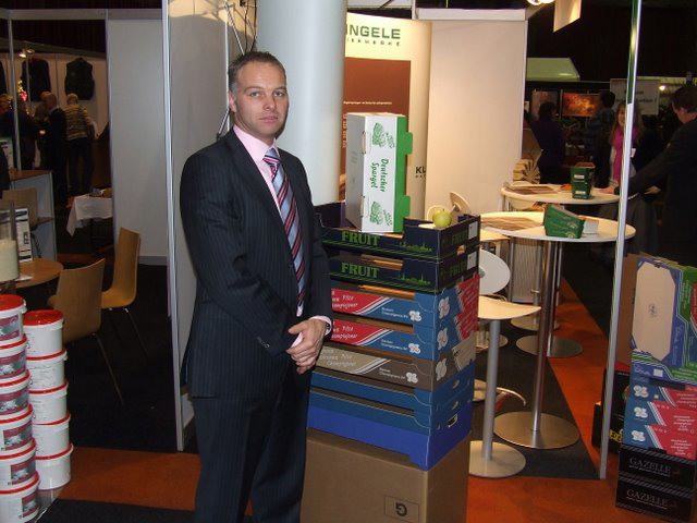 Pieter Nas van Klingele Golfkarton exposeerde verschillende kartonnen agf-verpakkingen