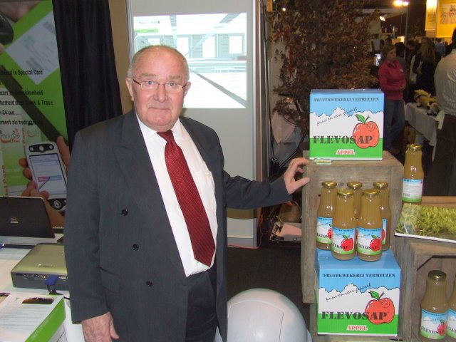 Dhr. Vermeulen schonk graag een glaasje Flevosap voor de bezoekers in.