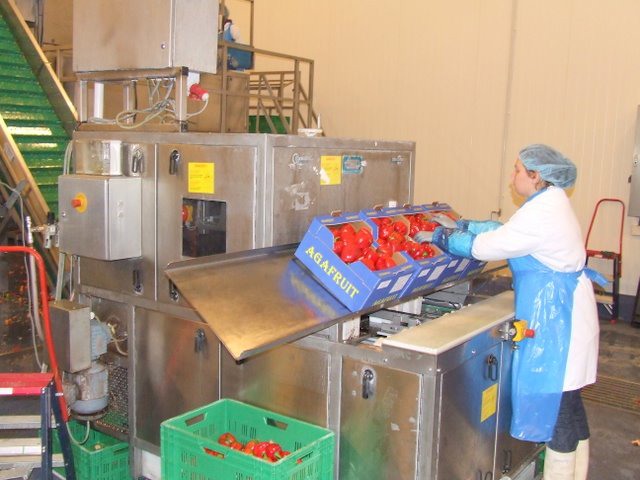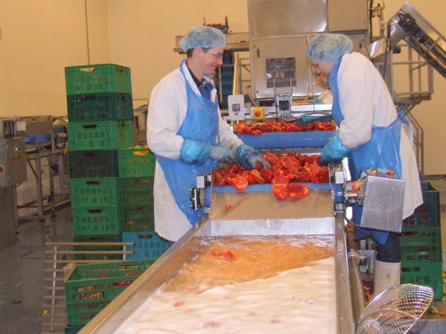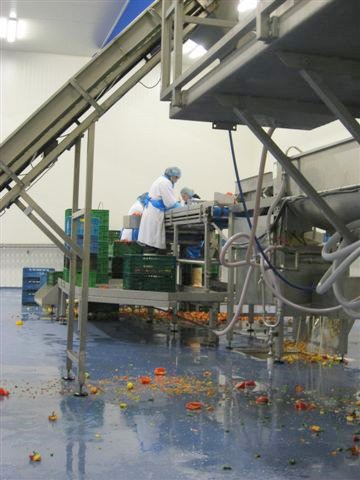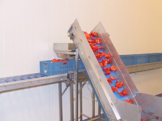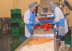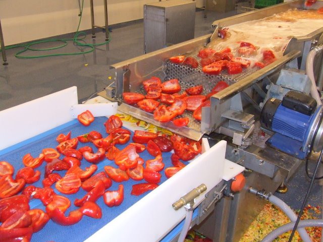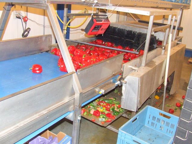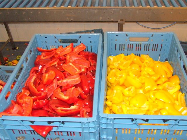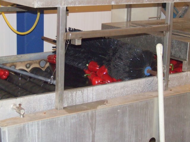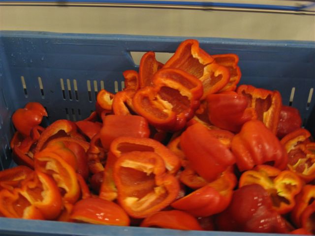 Paprika's worden gewassen voor bewerking