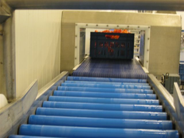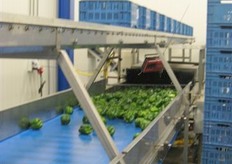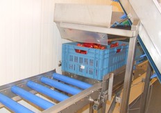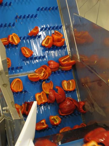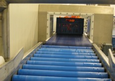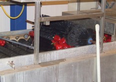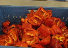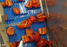 De paprika's gaan na het wassen nog even over de droogband