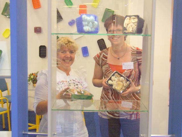 Mieke Verstappen en Franka Keijzers tonen de verpakkingen van Verstappen verpakkingen