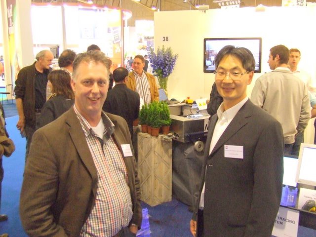 Johan van Namen en John Reuvers introduceerden op de beurs een nieuwe plukrobot voor de versmarkt
