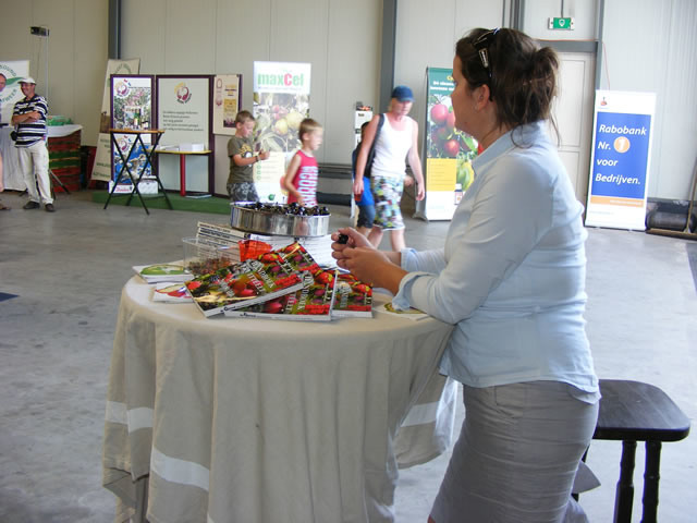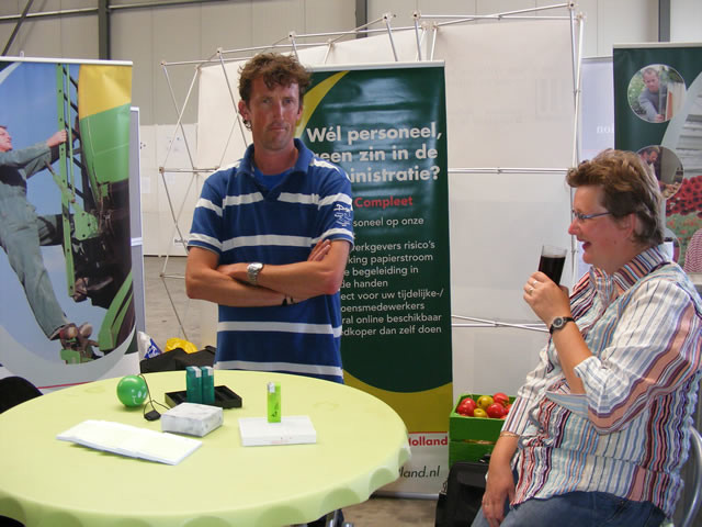 Annemarie, charmante gastvrouw in de stand van uitgeverij Boekhout