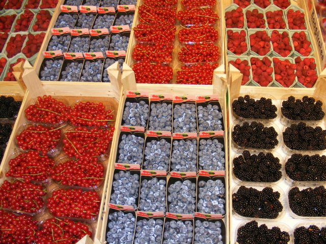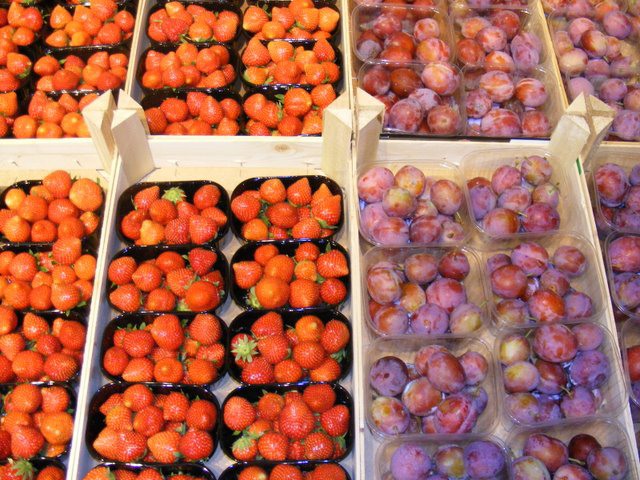 Aardbeien en pruimen
