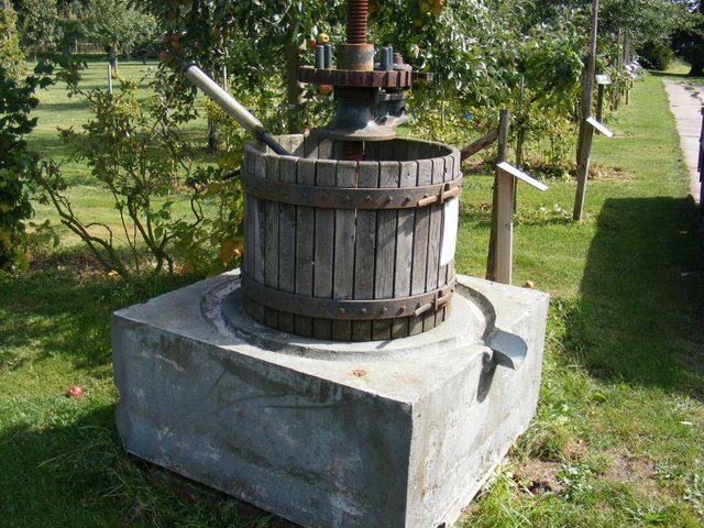 Oude spuitmachine en fruitkneuzer