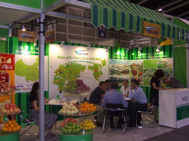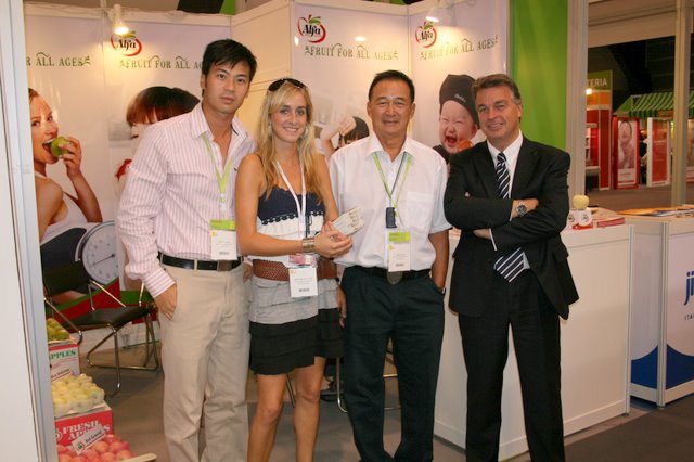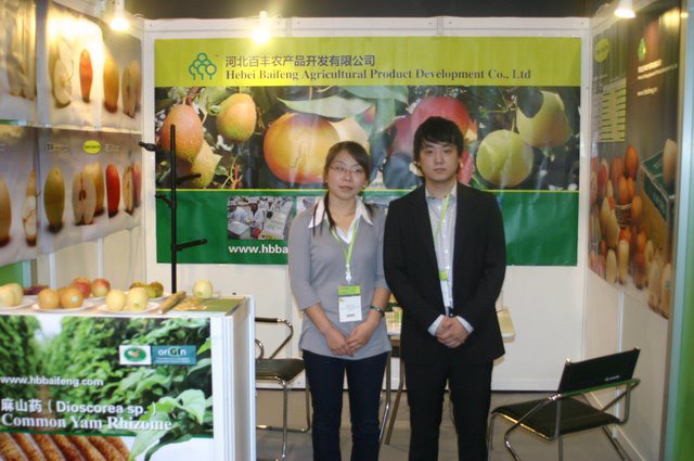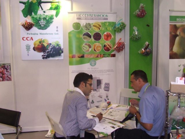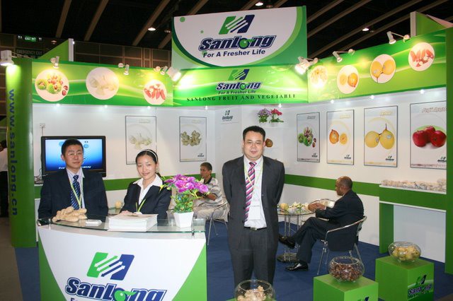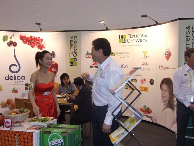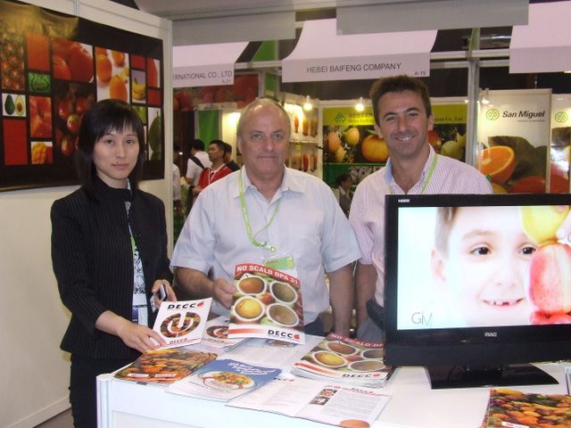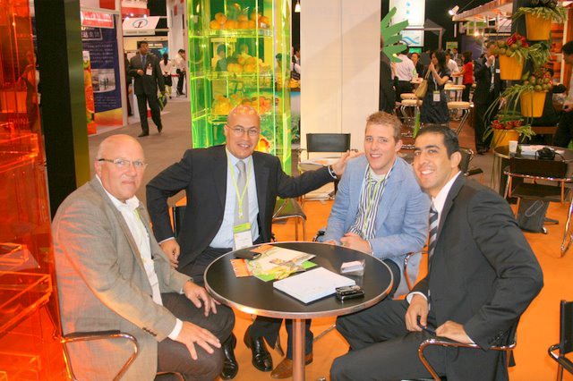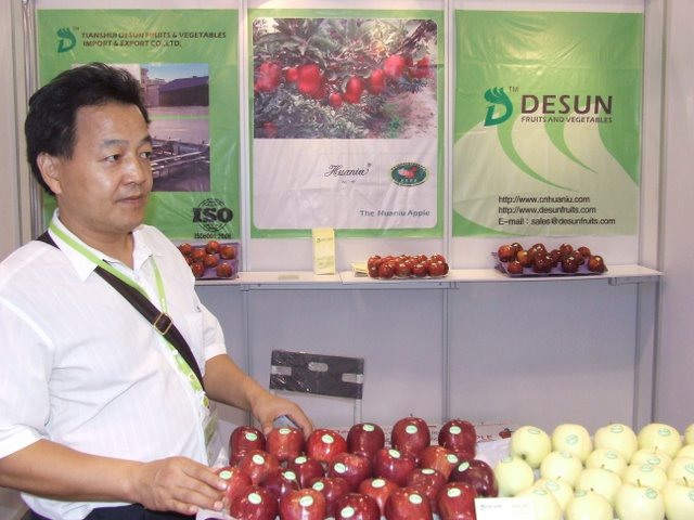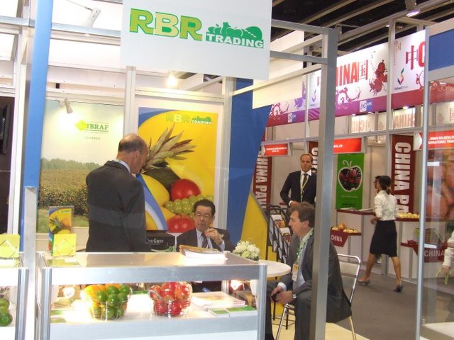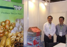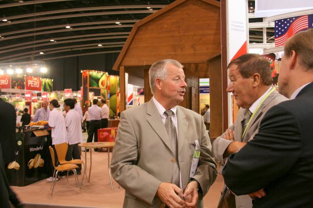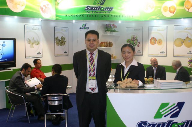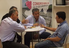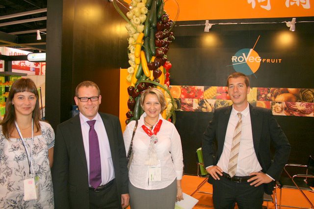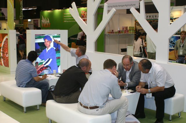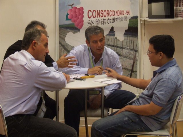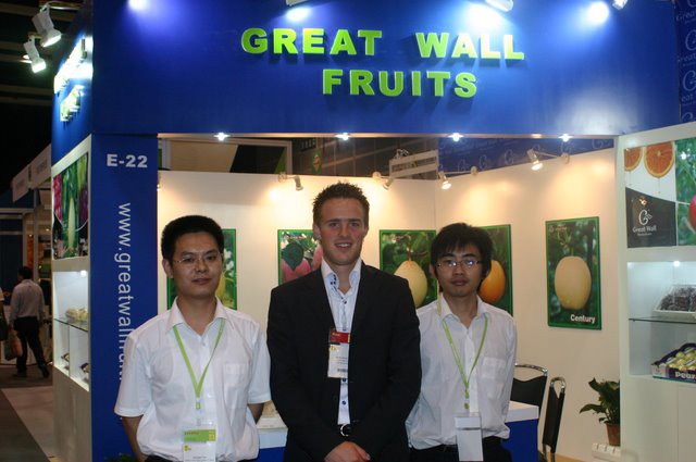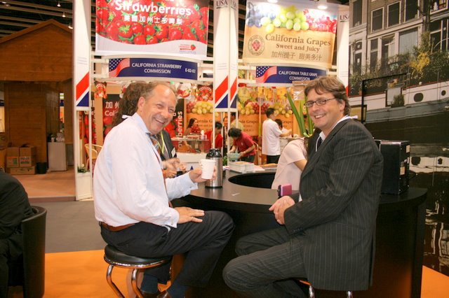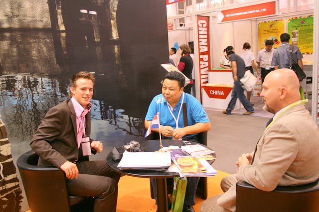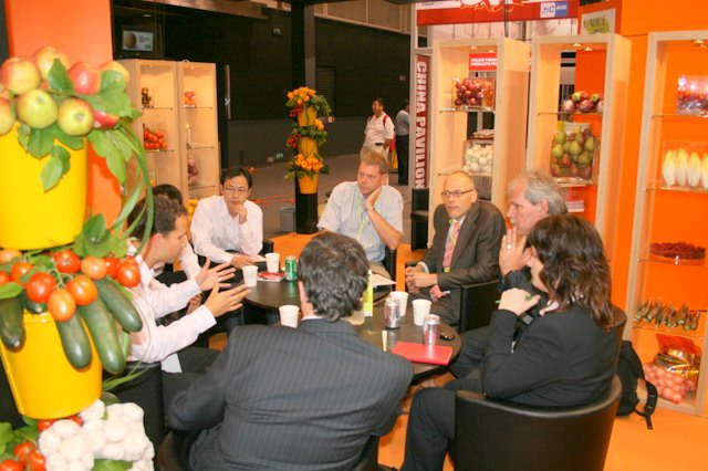 Collega Sander Bruins Slot, verantwoordelijke van Freshplaza.com in gesprek met een Chinese exporteur en Duitse importeur Rosa International. De Chinese exporteur had dankzij enkele artikelen op Freshplaza.com tientallen containers groenten geƫxporteerd.