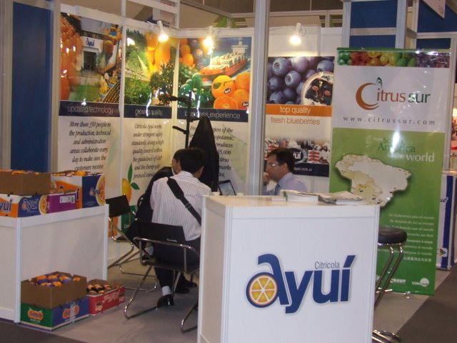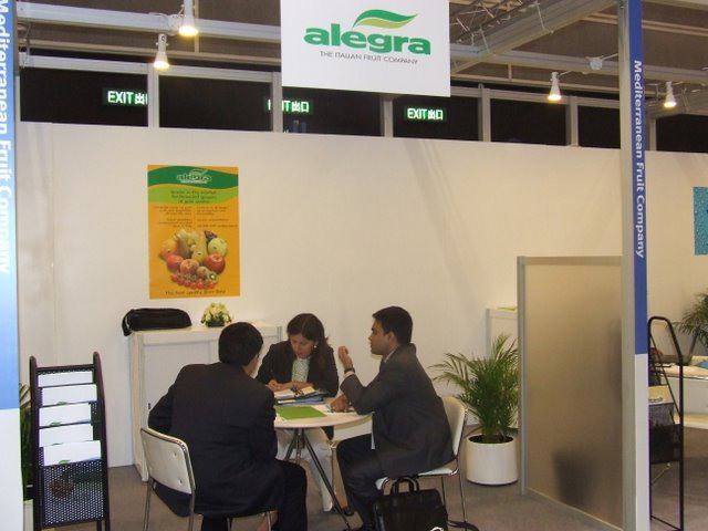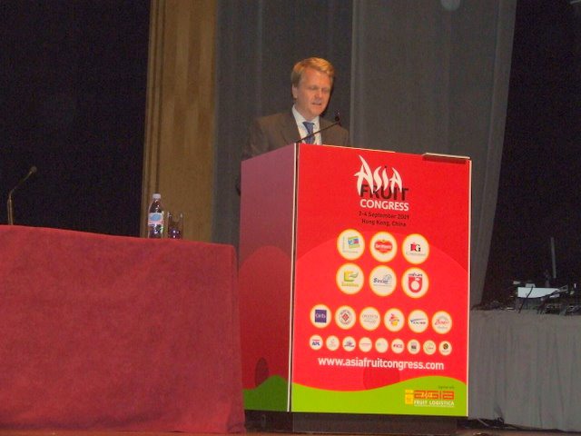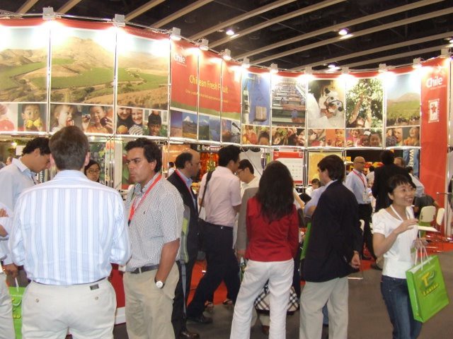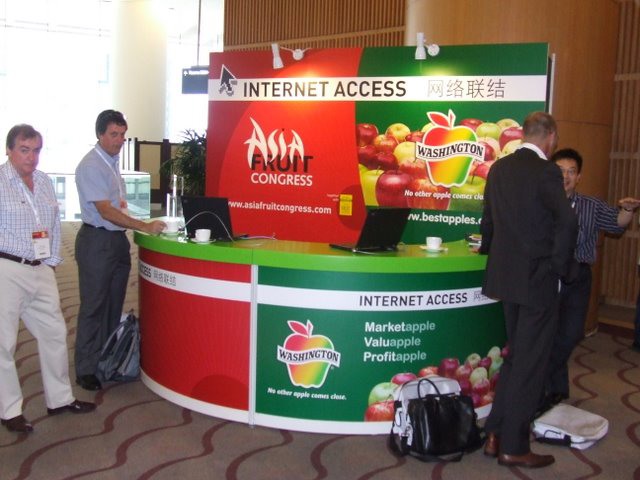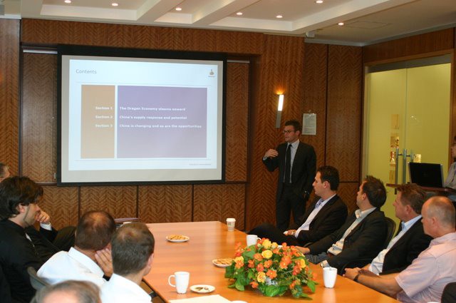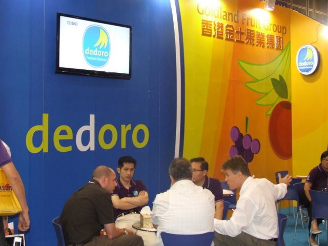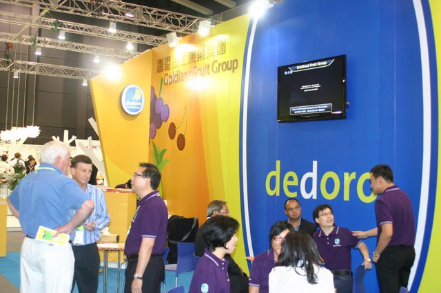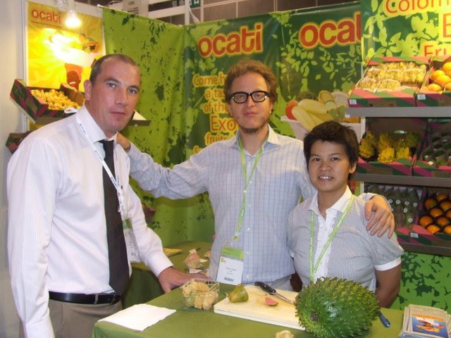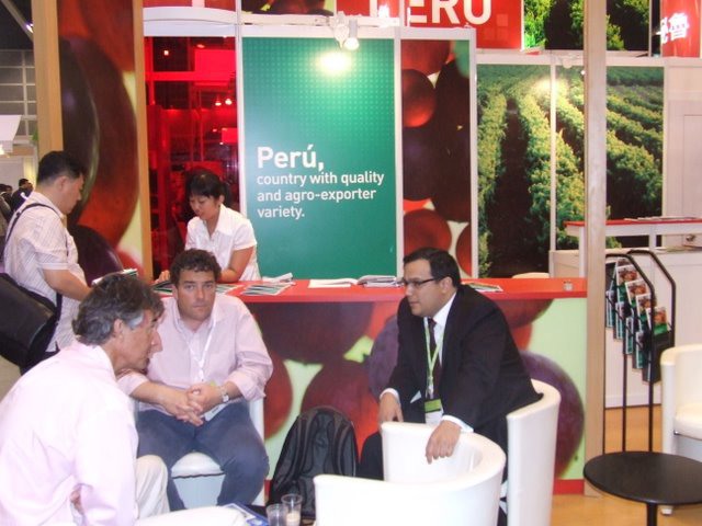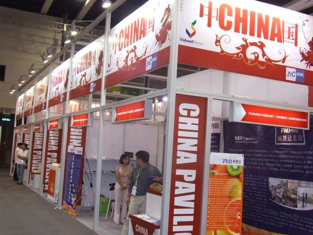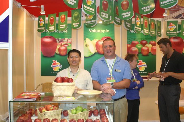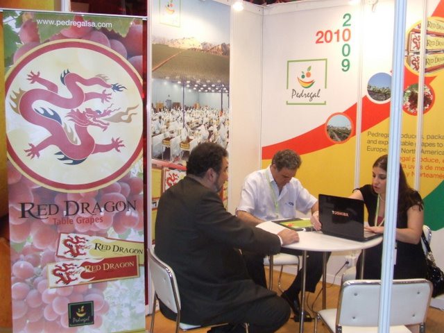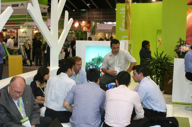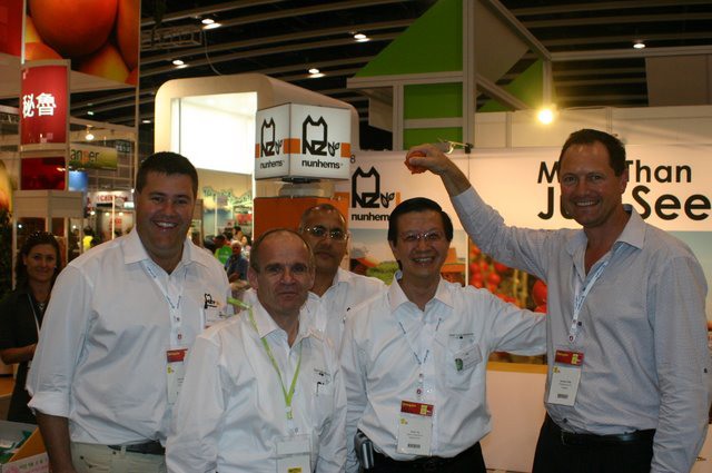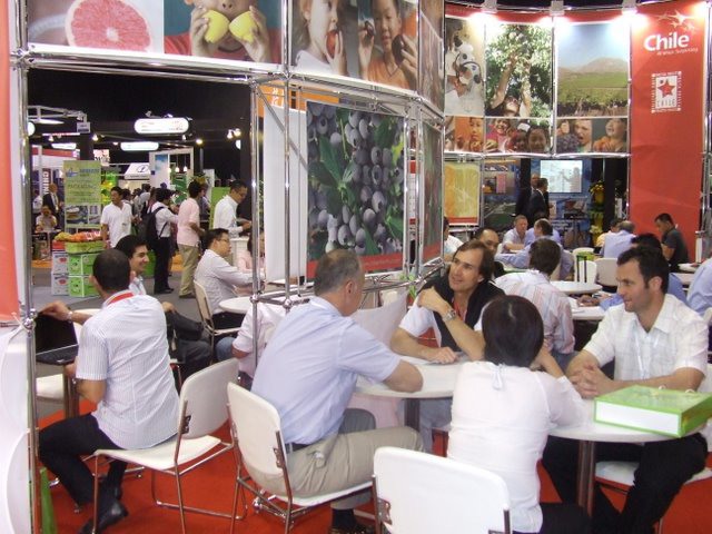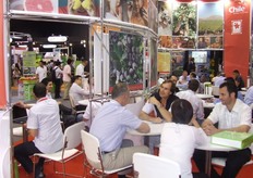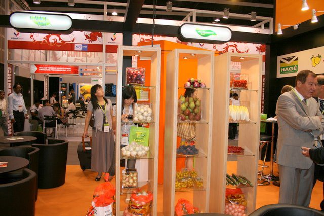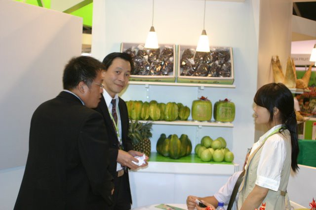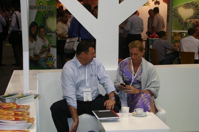 Collega Sander Bruins Slot, verantwoordelijke van Freshplaza.com in gesprek met een Chinese exporteur en Duitse importeur Rosa International. De Chinese exporteur had dankzij enkele artikelen op Freshplaza.com tientallen containers groenten geƫxporteerd.