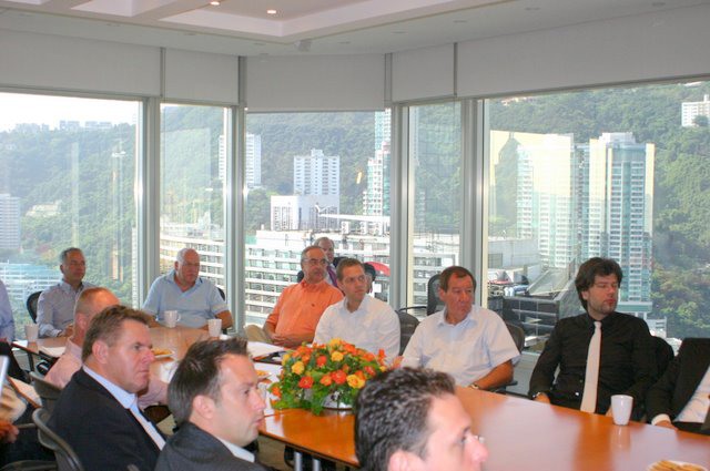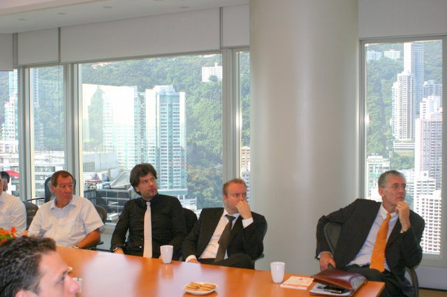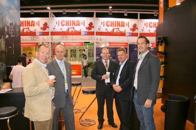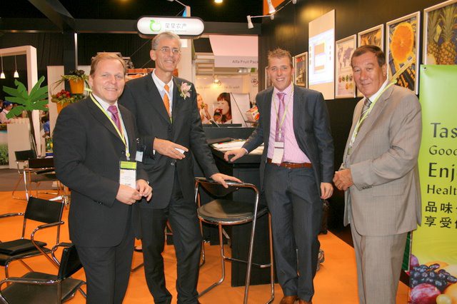 De Nederlandse consul uit Hong Kong ging alle Holland stands af met Henk van Duijn en Willem Baljeu
