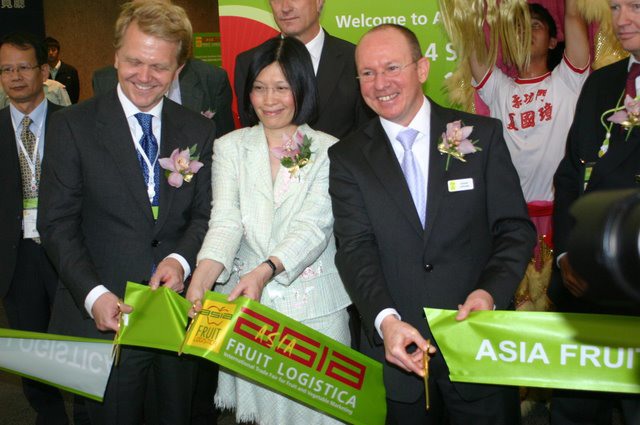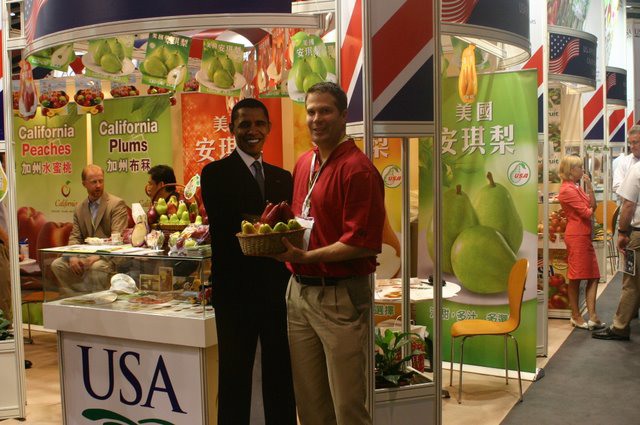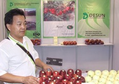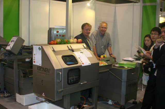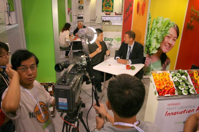 Collega Sander Bruins Slot, verantwoordelijke van Freshplaza.com in gesprek met een Chinese exporteur en Duitse importeur Rosa International. De Chinese exporteur had dankzij enkele artikelen op Freshplaza.com tientallen containers groenten geëxporteerd.