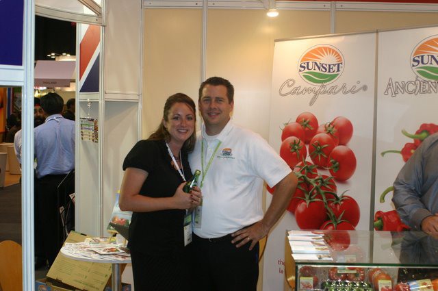 Chris Groot van Enza wordt door de lokale tv-zender geĆÆnterviewd over de Sweetgreen paprika.