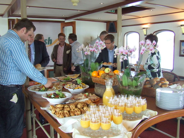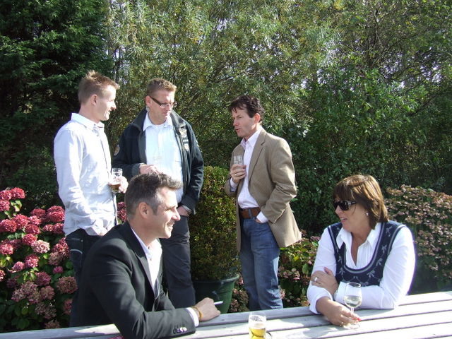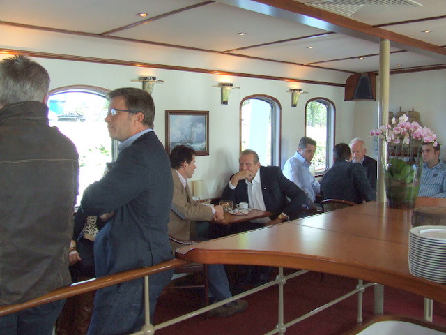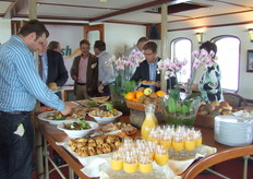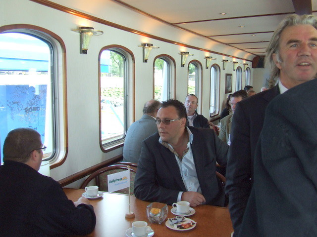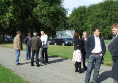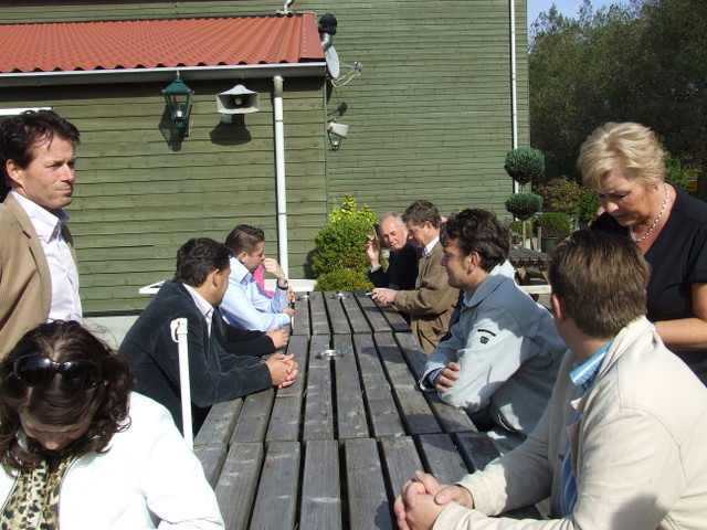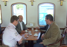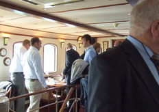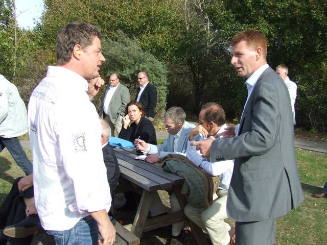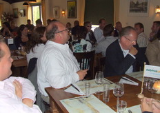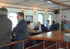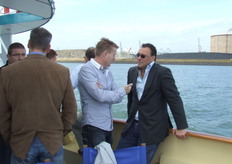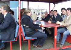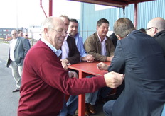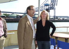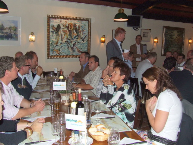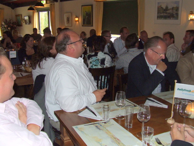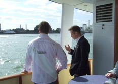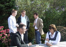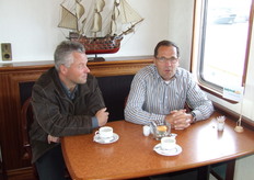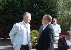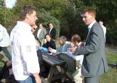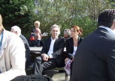 Op de voorgrond Michel Frings van Hillfresh in gesprek met Marlies Vermeulen