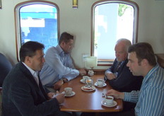 Linda Michon, Mark Verhoef, Lex Teurlings en Gert Noorderink van DailyFresh spreken nog even de laatste puntjes door.