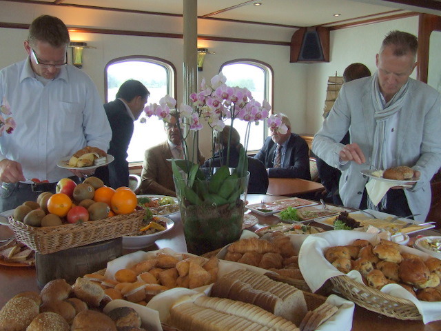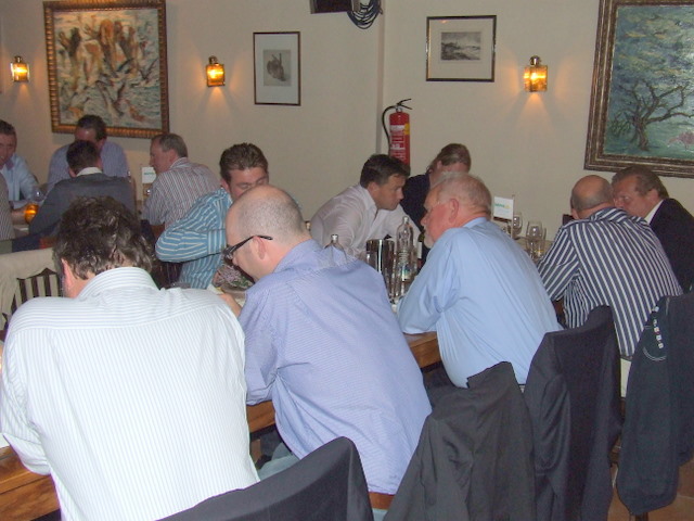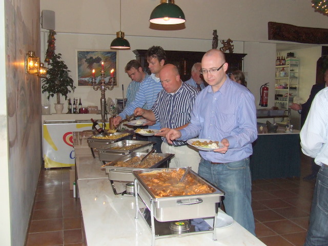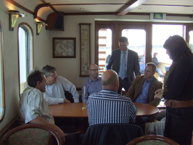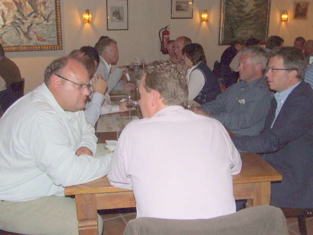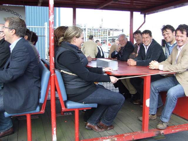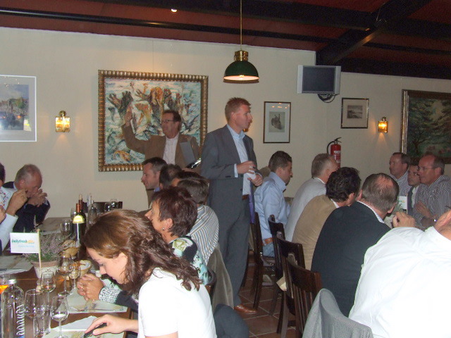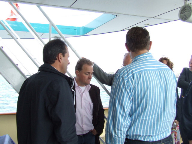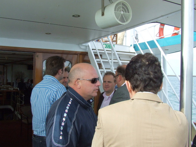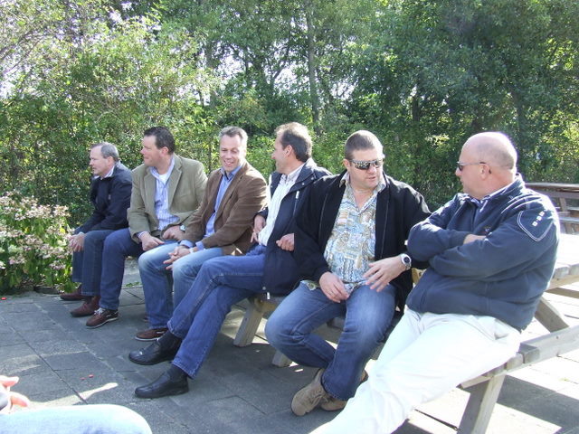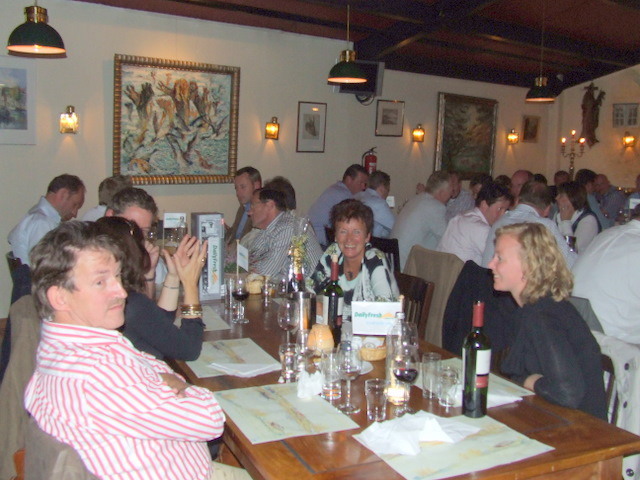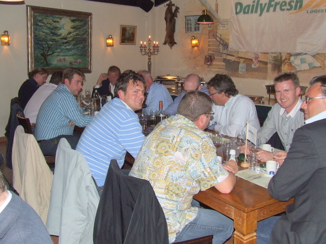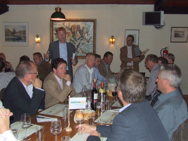 Jean Martin Durieux van Olympic Fruit, Rob Berkmeijer van TNI, Steve Holland van Capespan, Gert Noorderink, Sjaak Melissant, Dirian Boekhout en op de rug Frans van der Burg.