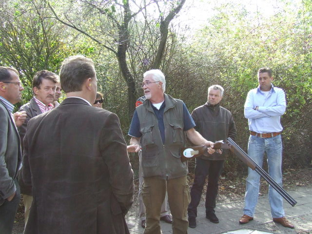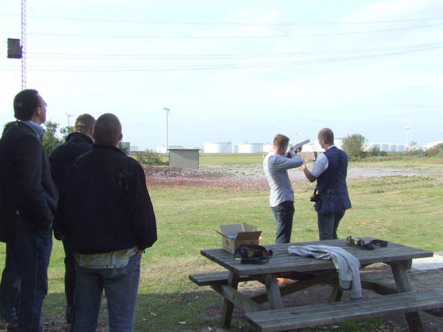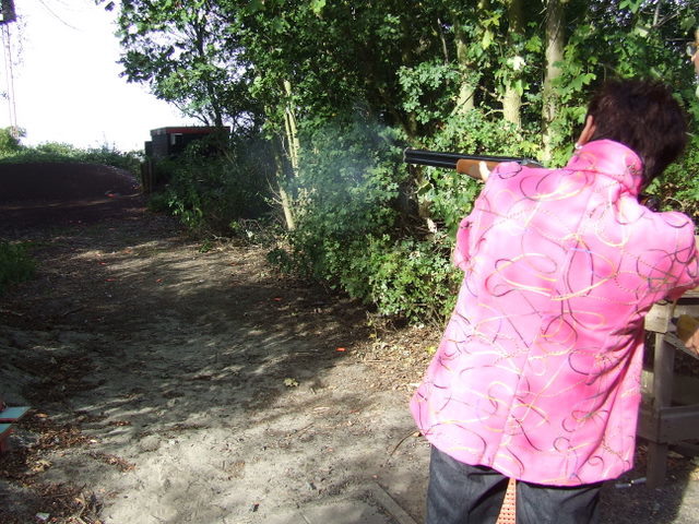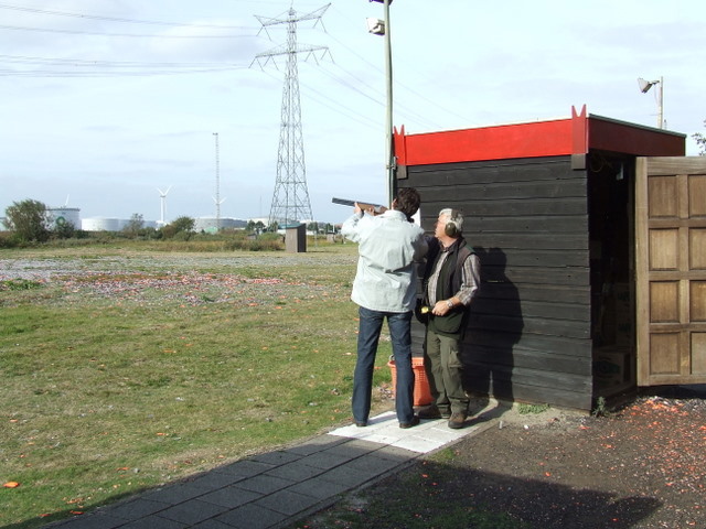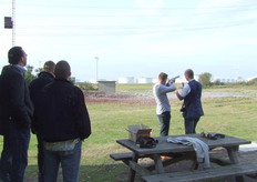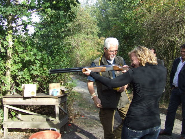 Allemaal oorbeschermers in tegen de harde knallen...dus extra hard praten om elkaar te verstaan.