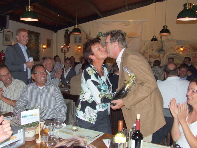 Linda Michon wordt aan het eind van de dag door de mannen van DailyFresh nog even in het zonnetje gezet. Bedankt!