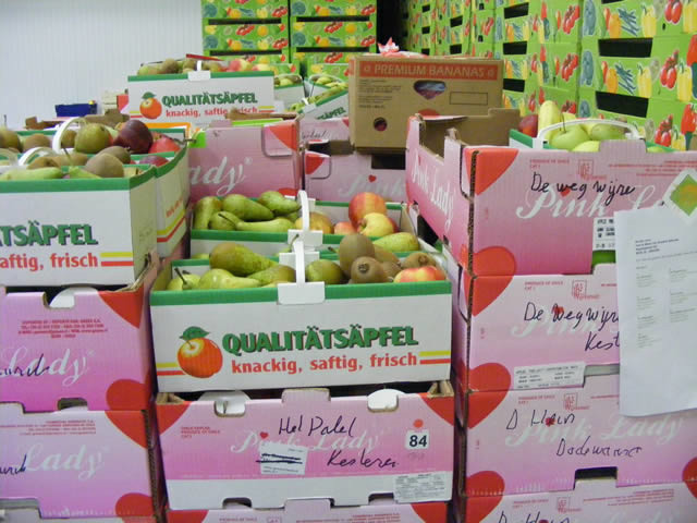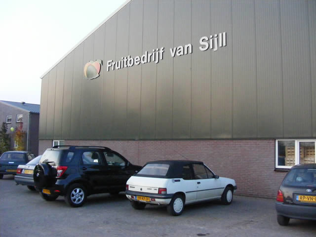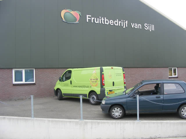 vooraanzicht met bedrijfsauto voor de bezorging van schoolfruit