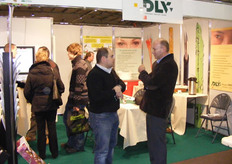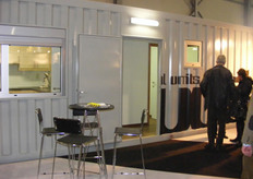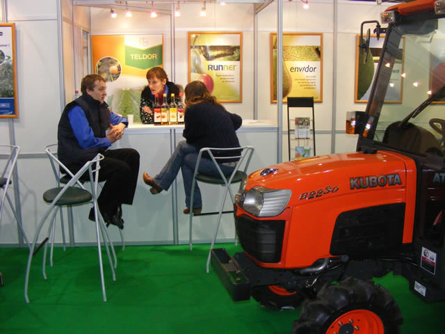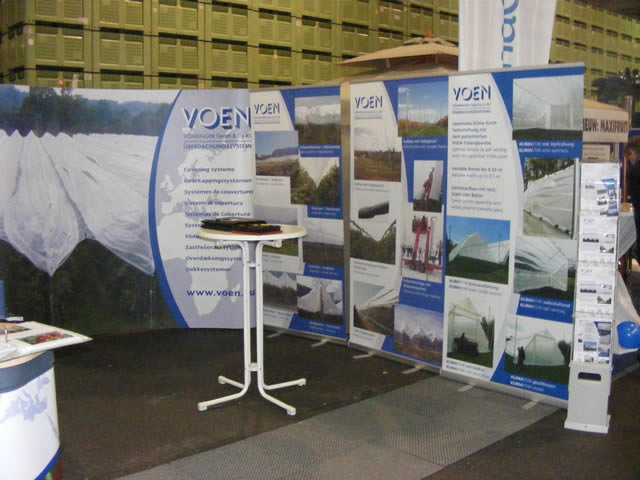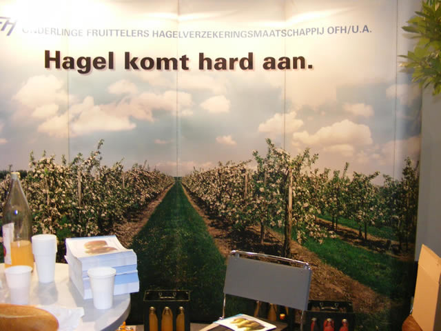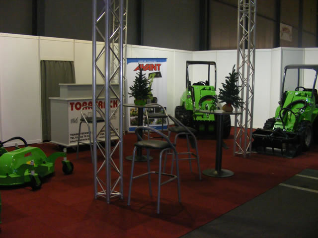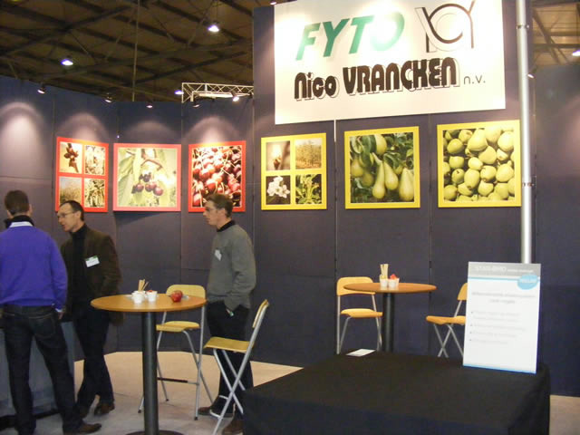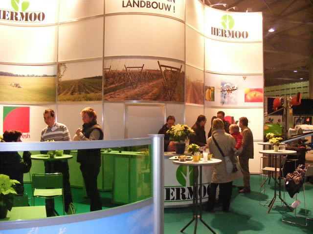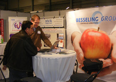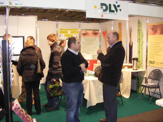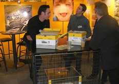 Ronald Vermeulen van DLV, Gerben van Veldhuizen en Alex van Nifterik voor de stand van Van Nifterik