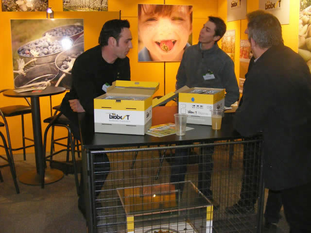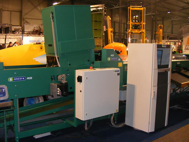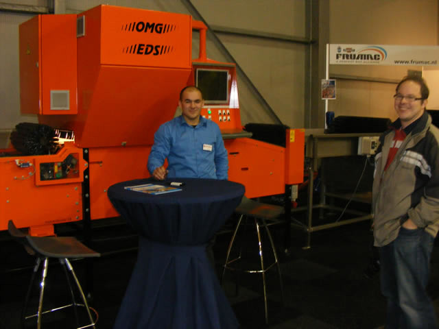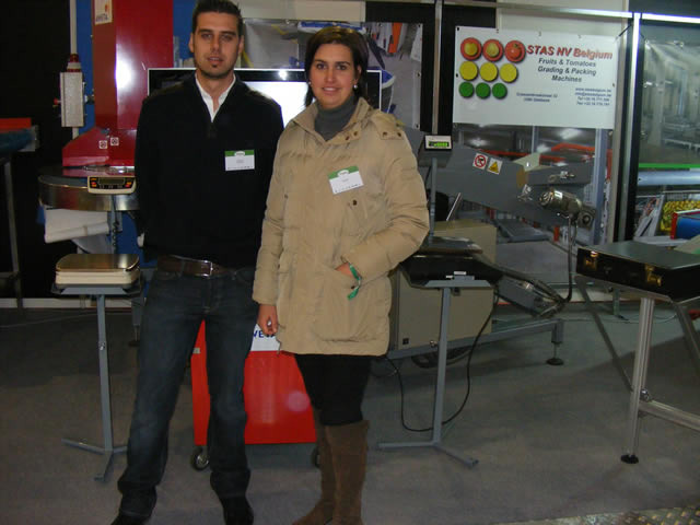 Kristof en Sofie Stas in hun stand met sorteerapparatuur
