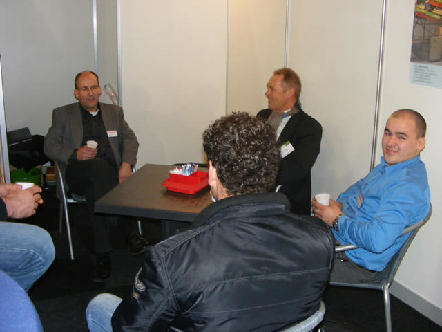 John v.d. Voort, Dirk Goedhart en Renee Rubens in de stand van Smeva Geerlofs