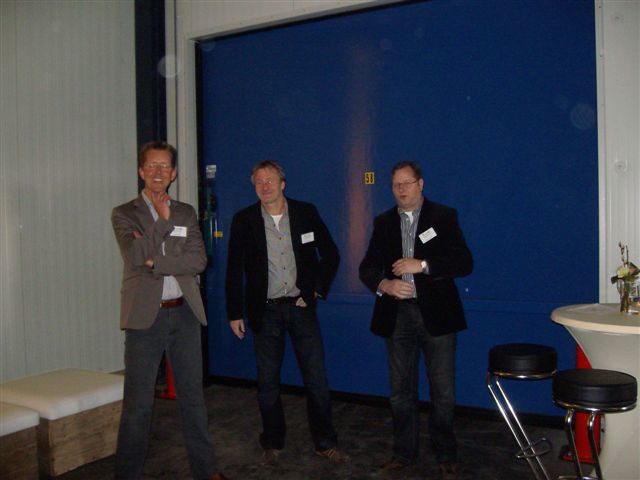 Robert Kos (Gebr. Kos) in gesprek met Robert Schilder en Theunis Verheij