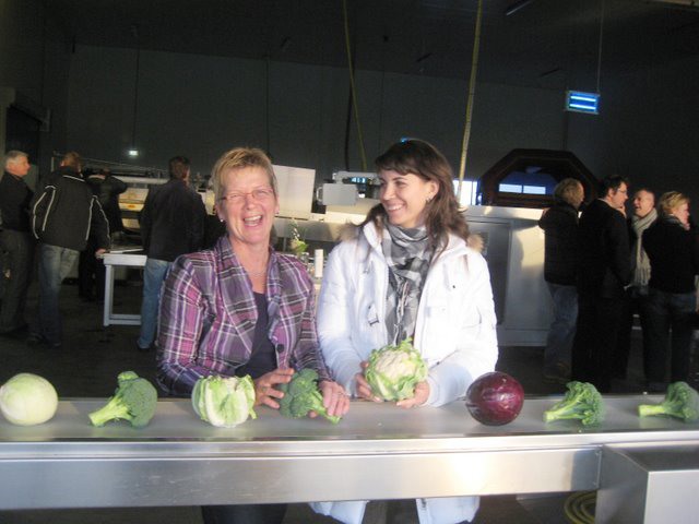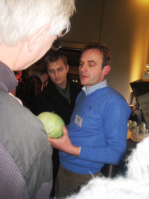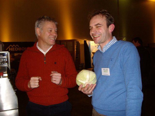 Fred Blokker (Beekenkamp Plants) schrikt ervan hoe lekker biologische spitskool is! Kees Nieuwboer (links) denkt ‘geef mij maar bloemkool’.