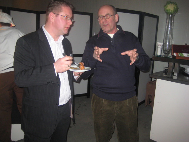 Dijksma verzorgde de koeltechniek op basis van natuurlijk koude middel, Theunis Verheij (Dijksma) en Henk Dijksma (Dijksma) evalueren nog even na