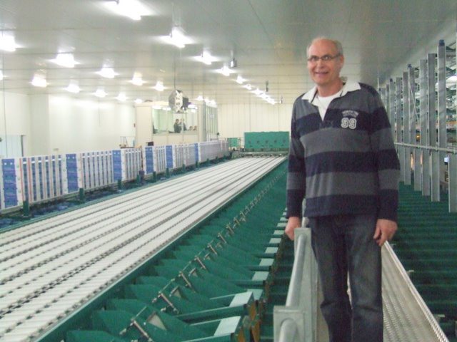 Wim Dingemans bij de machine van Greefa, die maar liefst 40 uitgangen telt