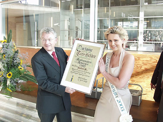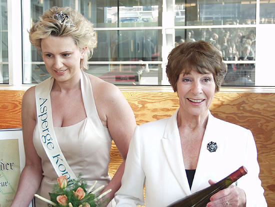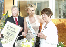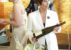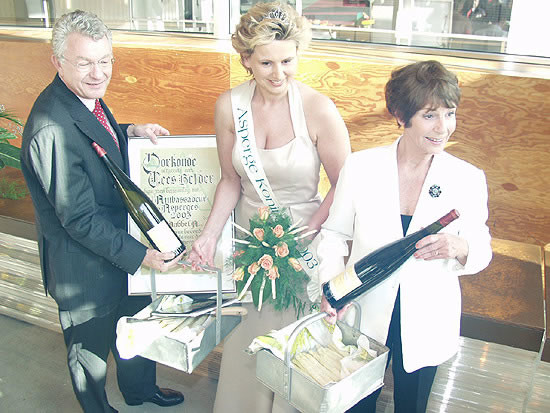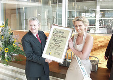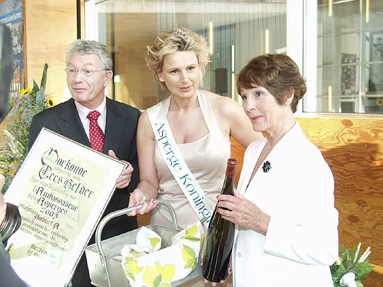 Aspergekoniging met links van haar de voorzitter Stichting 'Dubbel A' dhr Pieter Smits.