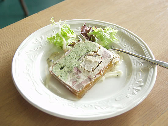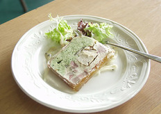 Les asperges 'Allumettes' et terrine de champignons et langue de veau.