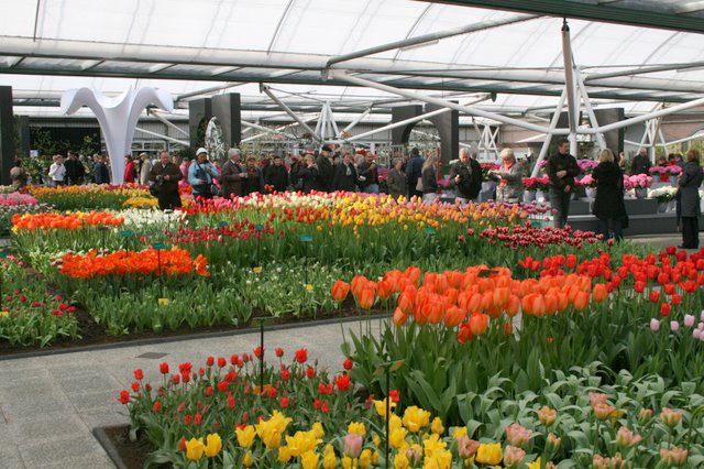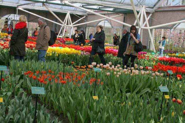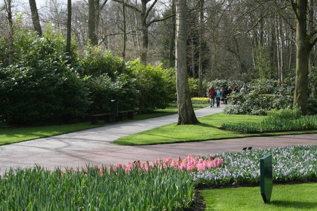 Op de wandelpaden al volop bezoekers van de Keukenhof