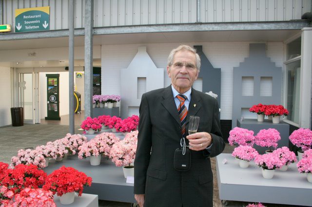 Dhr. Jos Boots, Secretaris van de TuinBouw Businessclub Zuid-Nederland, wil graag bij de bloeiende azalea's poseren