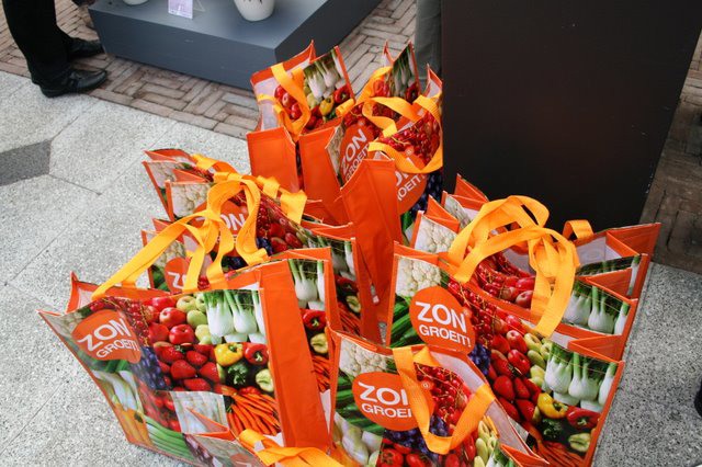Uiteraard stonden de bekende tassen van ZON gereed, met daarin alle denkbarre informatie over....asperges! Met gratis aspergeschiller