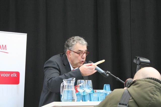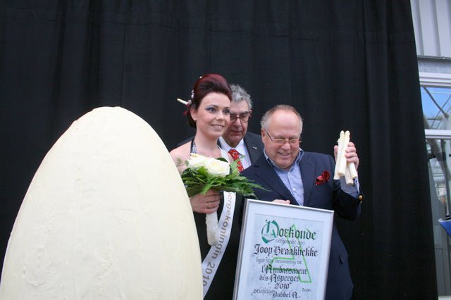 "De voorzitter van Keukenhof Holland vertelt met enige trots dat hij vereerd is met de keuze van "zijn" park voor dit evenement "Asperges en onze bloemenpracht, 't heeft allebei met het voorjaar te maken..."