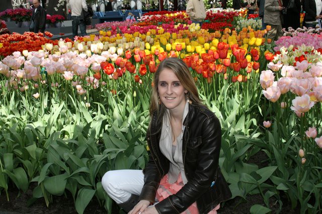 Natuurlijk wel even poseren bij de tulpen, je komt ook niet iedere dag in Keukenhof