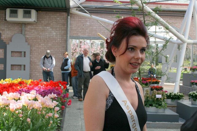 Tja, daar is ze dan...de aspergekoningin 2010,de asperges dienen zelfs als haarversiering