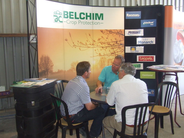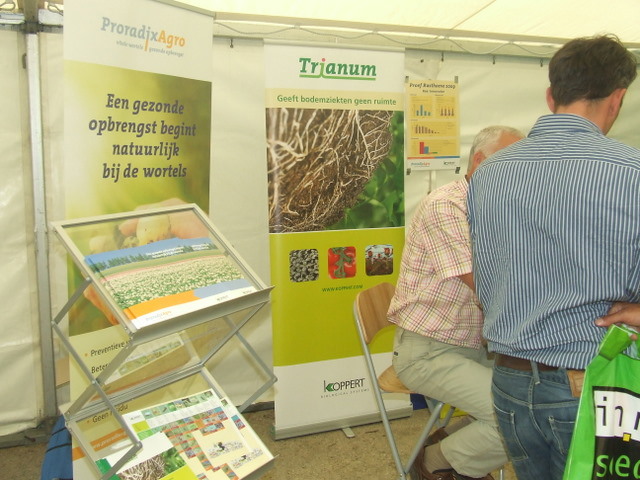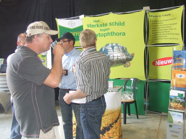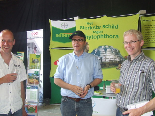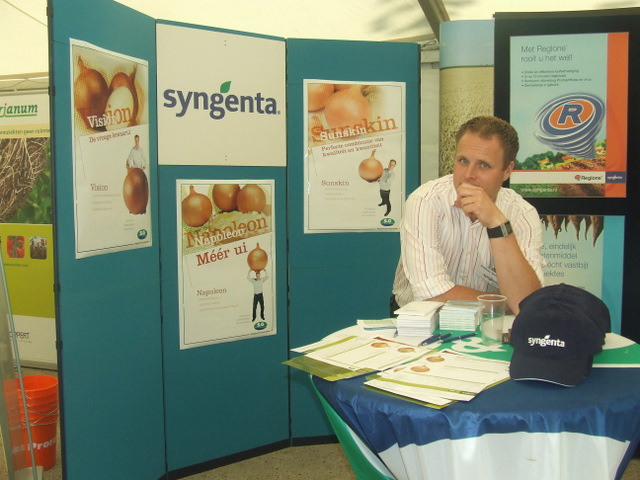 Rene v/d Bosch en Jaap de Jonge van Limagrain (voorheen de uien afdeling van Advanta) stonden met André Boot van Nickerson Zwaan op de beurs André was even een rondje doen.