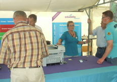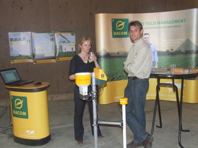 Janneke Hadders van Dacom had bodemvochtsensoren(voorgrond) en schimmelziekte voorspellingsapparatuur meegenomen.