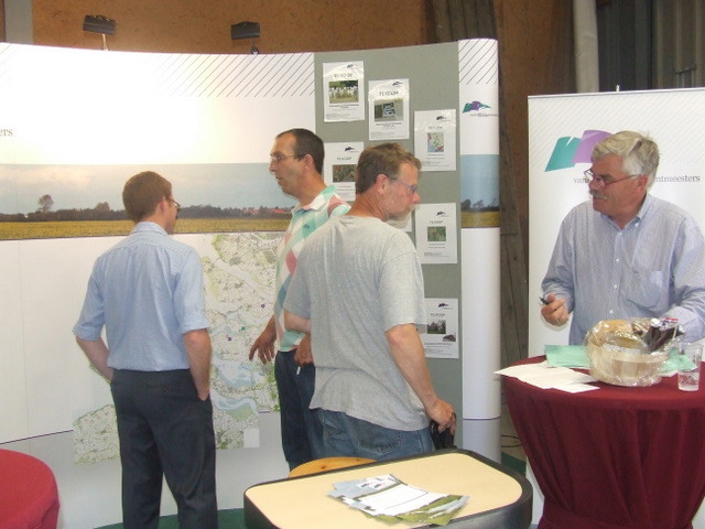 Bertill van de Wiel (donkerblauwe pet) druk in gesprek met geinteresseerden.