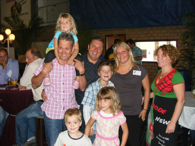 Ook Han Fleuren (links) met zijn vrouw en kinderen kwamen Adrie en Nicky (midden) feliciteren