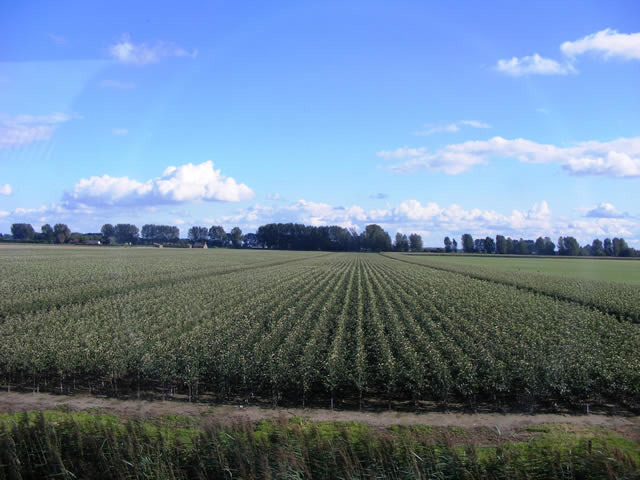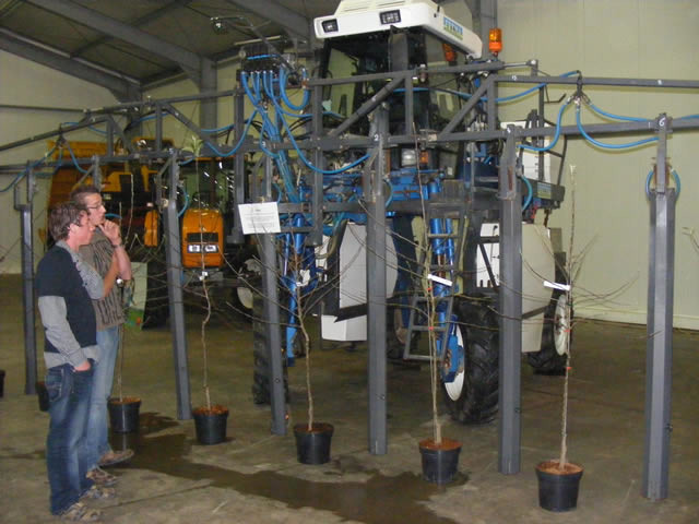 De machines stonden opgesteld in de enorme koelhal voor fruitbomen