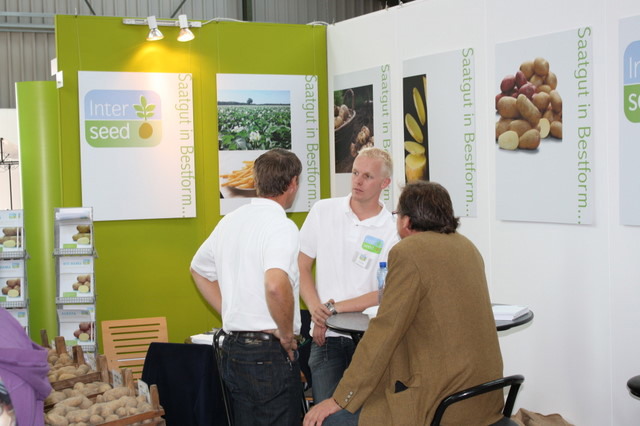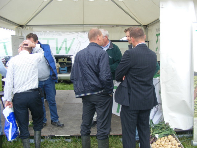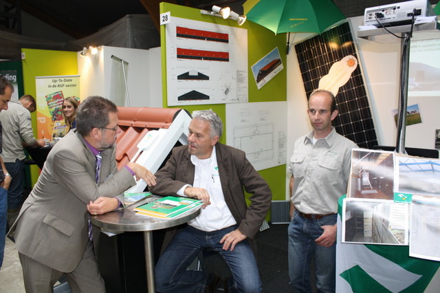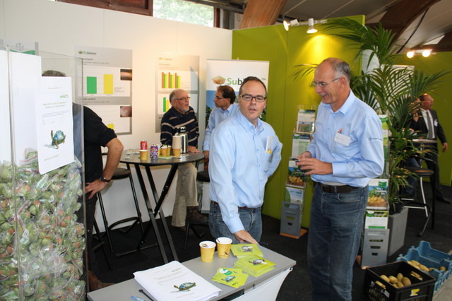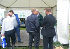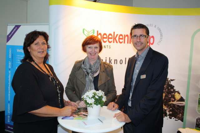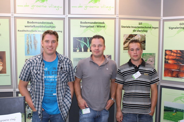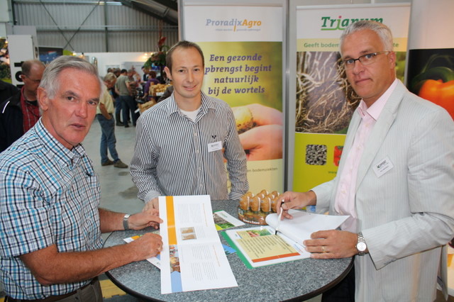 Arjen Koppert en Nico Harteveld met een bezoeker (links) in de stand van Koppert Biological Systems