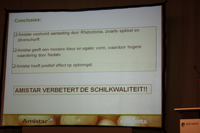 Nedato en Syngenta Crop Protection vertelden dmv een presentatie over hun samenwerking om de schilkwaliteit van aardappelen te verbeteren.